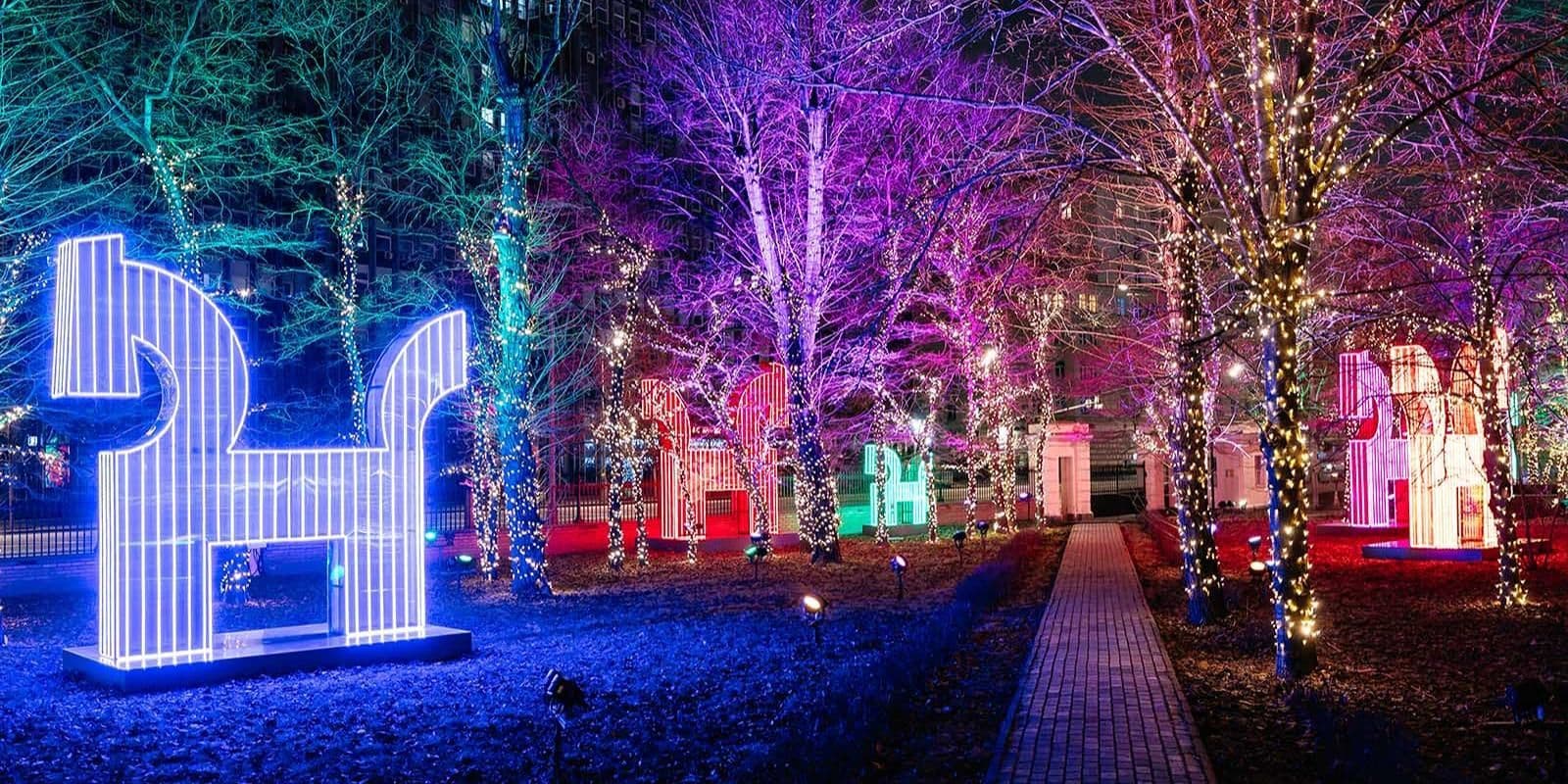 В Саду благодарности врачам и врачебному делу в Склифе развернулась настоящая сказка — нарядные ели, сверкающие шары и кристаллы в стиле «Щелкунчика».