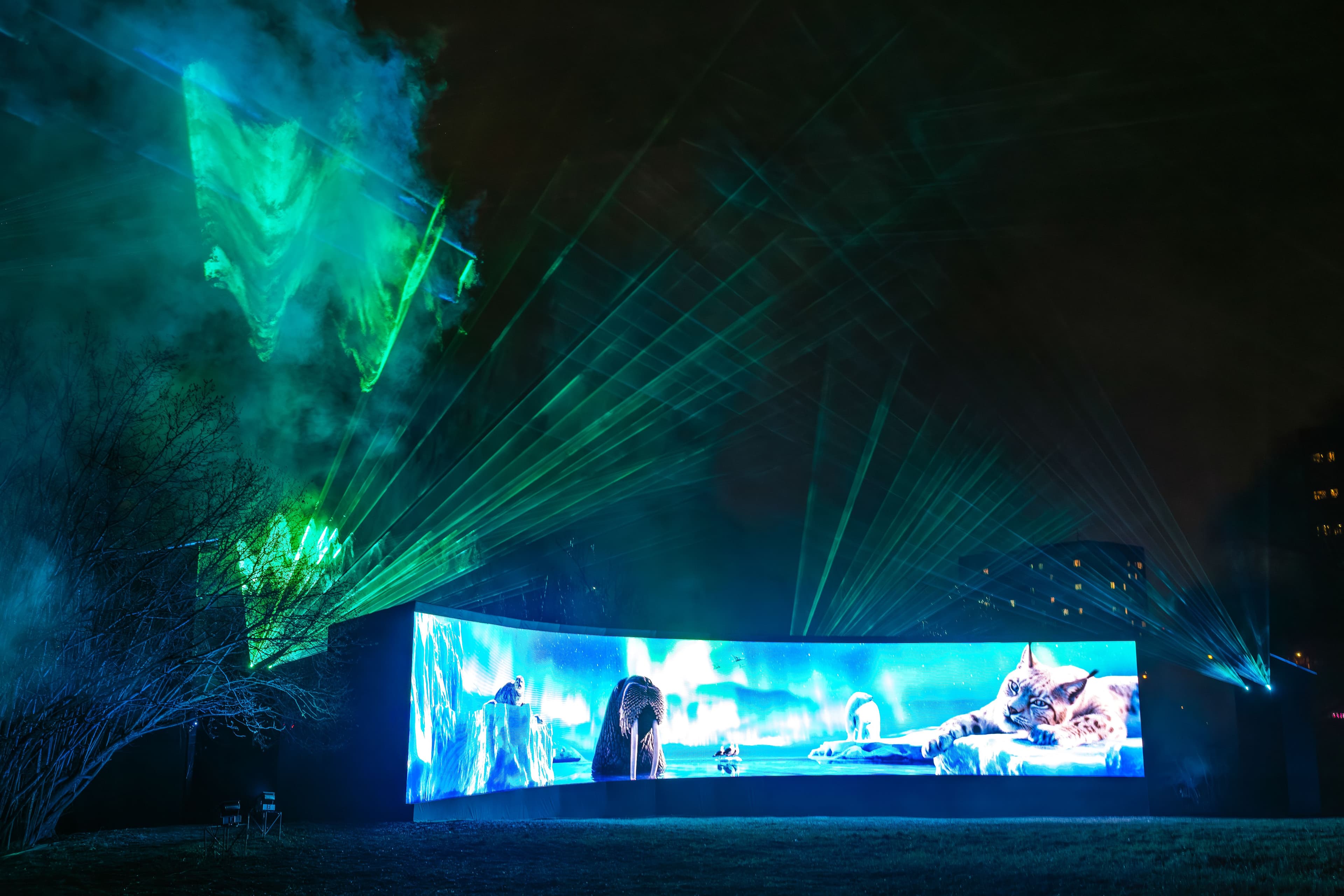 В парковой зоне гости каждый вечер могут увидеть северное сияние и встретить уникальных животных со всей России, в том числе краснокнижных, которые будто появляются среди деревьев и кустов. Благодаря использованным технологиям природная среда органично входит в художественный замысел: световое шоу становится частью ландшафта и делает природу главным участником действа.